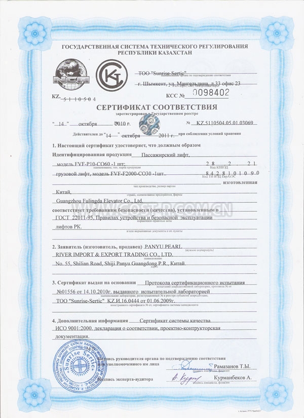 2)、一年有效期GOST-K證書,有效期是一年。這種證書只有在經(jīng)過1個哈薩克斯坦專家工廠現(xiàn)場審核后才能獲得。