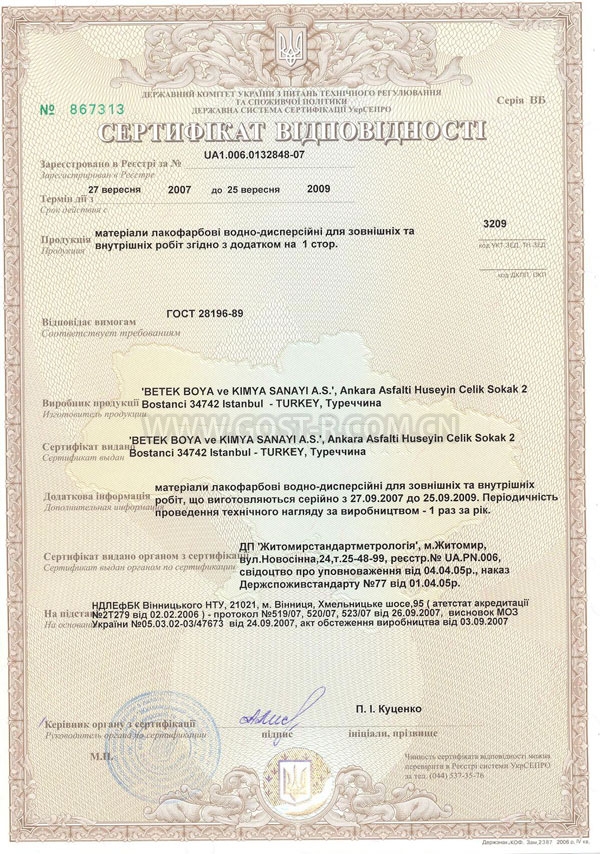 烏克蘭UkrSEPRO認證 |